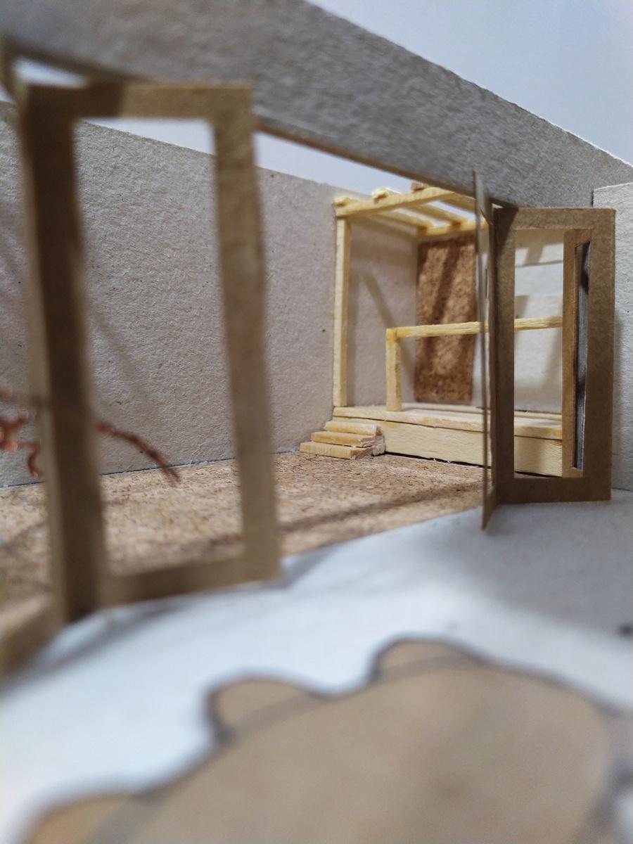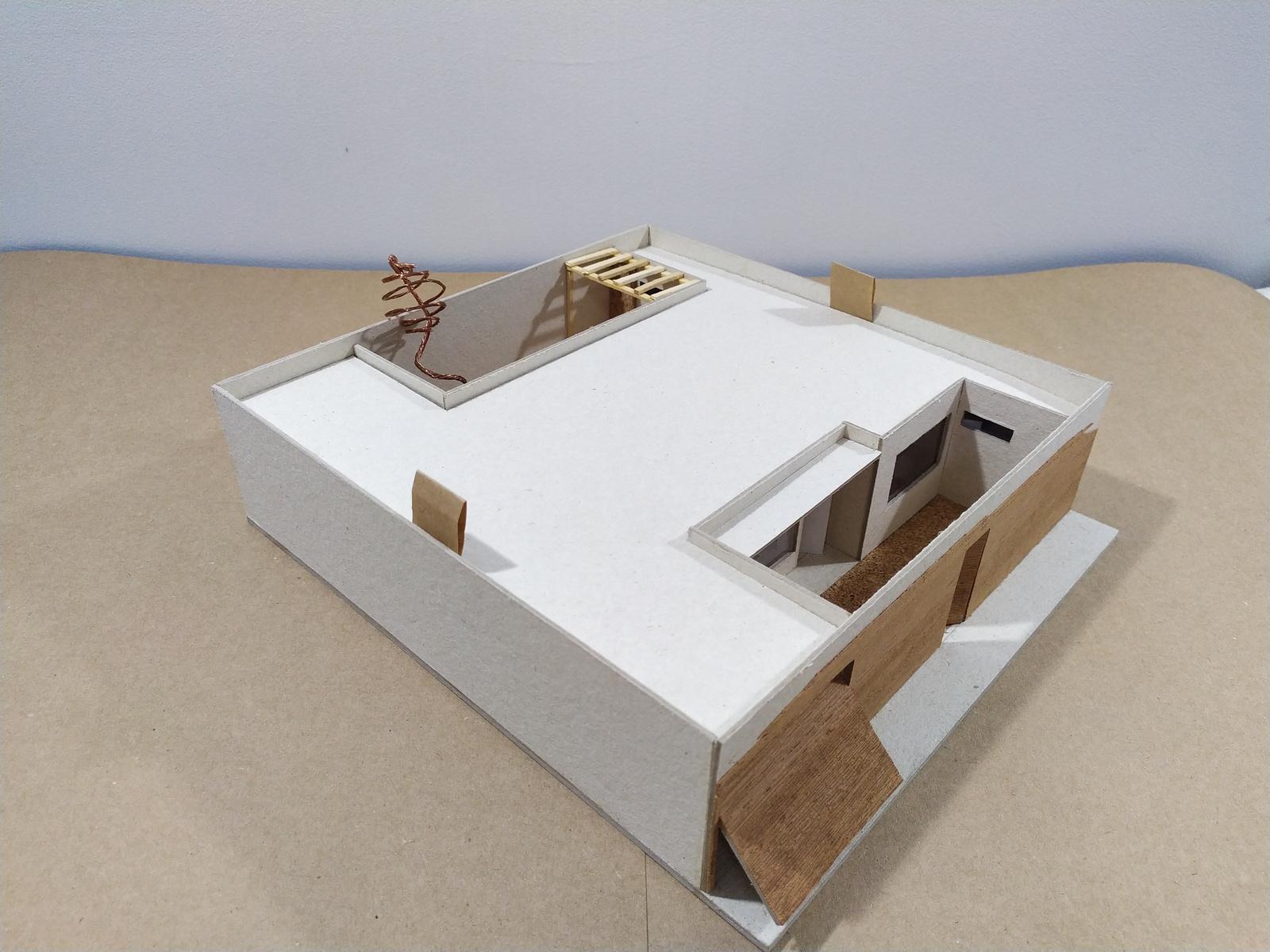 O trabalho consistia em elaborar composição bidimensionais e desenvolver até uma tridimensional, e com de intenção própria. Dos resultados finais do trabalho se tem maquete física, maquete virtual no Sketchup, assim como desenhos a mão livre de planta baixa e fachadas.