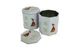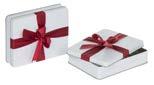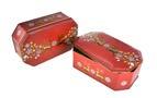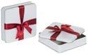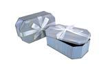 Sonderform 8-Eck; Stülpdeckeldose aus elektrolytischem Weißblech; mit echter Schleife; bedruckt