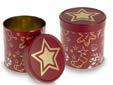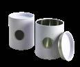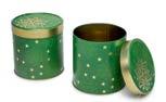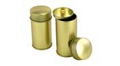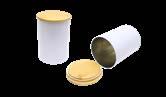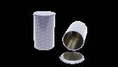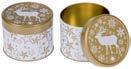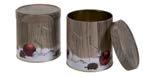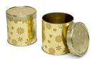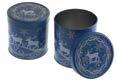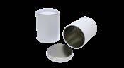 Runde Stülpdeckeldose aus elektrolytischem Weißblech; betdruckt