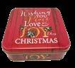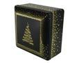 Sonderform Weihnachtsbaum; Stülpdeckeldose aus elektrolytischem Weißblech; bedruckt