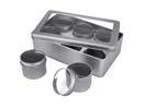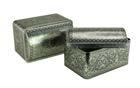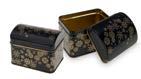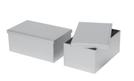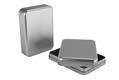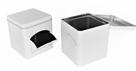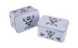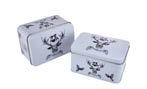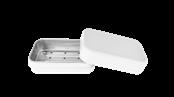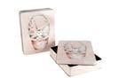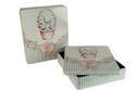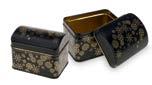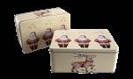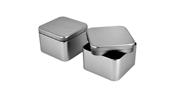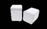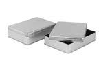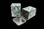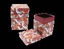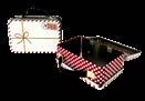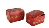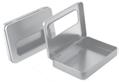 Sonderform Korb; Rechteckige Stülpdeckeldose mit Henkel aus elektrolytischem Weißblech; bedruckt Abmessung: 103x75x40 mm