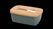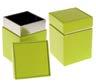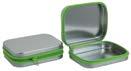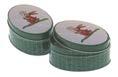 Sonderform flaches Ei; Stülpdeckeldose aus elektrolytischem Weißblech; mit echter Schleife; blank + grün
