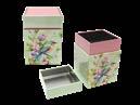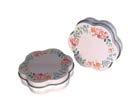 Sonderform Blüte; Stülpdeckeldose aus elektrolytischem Weißblech; bedruckt