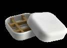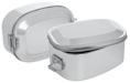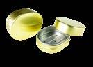 Sonderform flaches Ei; Stülpdeckeldose aus elektrolytischem Weißblech; bedruckt