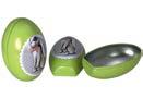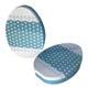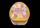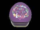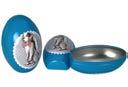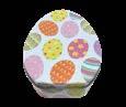 Sonderform Ei Ostern; Stülpdeckeldose aus elektrolytischem Weißblech; mit Bändchen und bedruckt