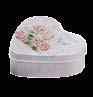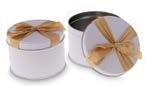 Sonderform flaches Ei; Stülpdeckeldose aus elektrolytischem Weißblech; mit echter Schleife; bedruckt