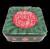 Sonderform Weihnachtsbaum; Stülpdeckeldose aus elektrolytischem Weißblech; bedruckt + Pailletten