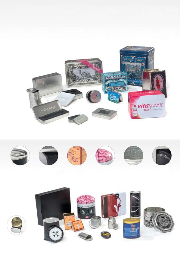 Im eigenen Werkzeug- und Formenbau können wir auf ein ständig wachsendes Angebot von mittlerweile über 1000 Formen zurückgreifen, die sich auf Ihre Wünsche anpassen lassen. Das ermöglicht hohe Qualität zu günstigen Preisen. Schraub- oder Stülp-Verschlüsse, Scharnierdeckel, Streueinsätze, Tiefzieheinlagen, Sichtfenster oder andere Extras lassen die Dose am Ende ihrem Inhalt gerecht werden. Die im Offset-Druckverfahren bedruckten Blechtafeln erreichen eine beeindruckende Schärfe und Brillanz. Permanente Qualitätskontrollen während und nach der Produktion sorgen für konstante Qualität, attrakti-