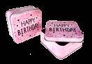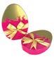 Sonderform flaches Ei; Stülpdeckeldose aus elektrolytischem Weißblech; mit echter Schleife; gold + pink