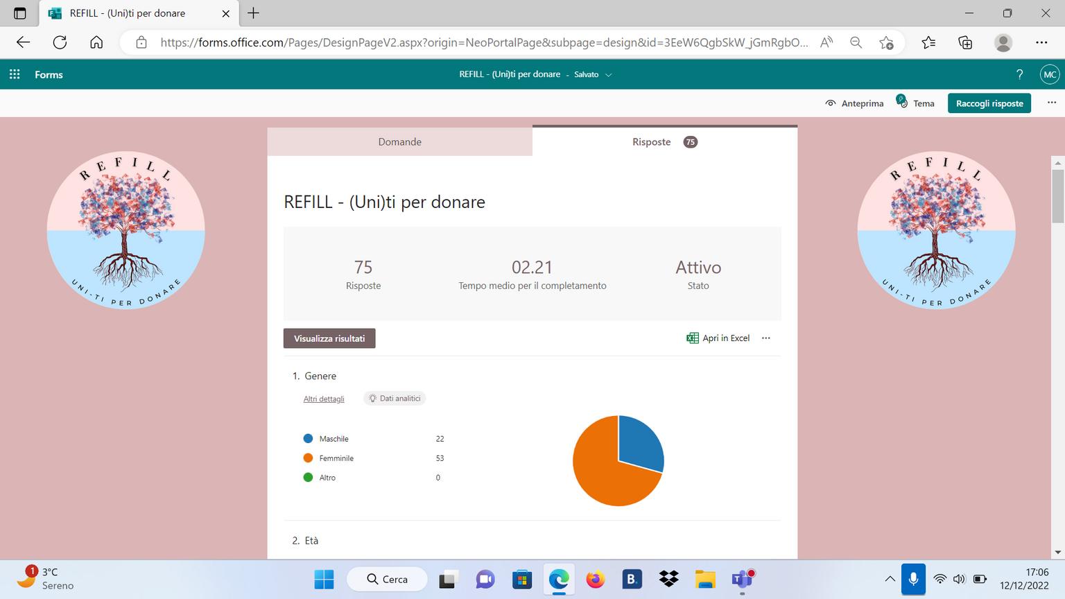 Numero di risposte raccolte con il questionario: