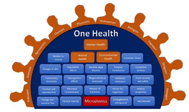 Cinque agenzie Europee (ECDC, ECHA, EEA, EFSA, EMA) nel Cross-agency One Health Task Force Framework For Action 2024-2026 individuano nelle microplastiche un esempio illustrativo di come gli inquinanti emergenti possano non solo contaminare l’ambiente ma anche entrare nella catena trofca, colpendo la salute animale e umana e incidendo sulla sicurezza alimentare. (35) L’azione congiunta tra Istituzioni e professionalità afferenti a diverse discipline consentirà di valutare in maniera approfondita e integrata l’impatto dell’inquinamento da micro e nano-plastiche sulla salute animale, umana ed ecosistemica. Solo in questo modo sarà possibile sviluppare maggiori capacità di valutazione del rischio e promuovere l’individuazione di soluzioni concretamente attuabili. (Fig. 2)