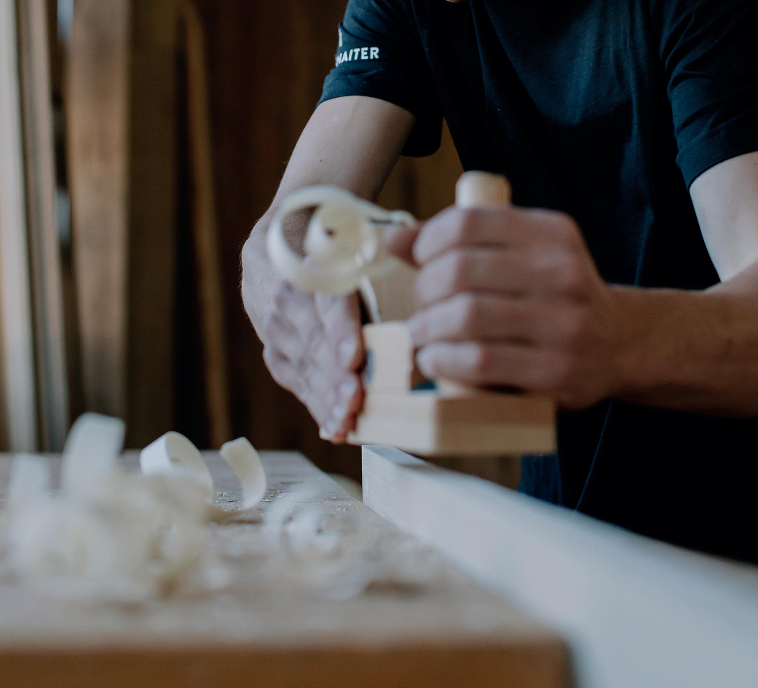 Im Handwerk liegt unser Ursprung, denn mit Egid und Leni Aufschnaiters kleinem Handwerksbetrieb hat 1960 alles begonnen. Seitdem fand eine große Weiterentwicklung in allen Bereichen statt. Was aber immer gleich geblieben ist, ist der hohe Anspruch an die Handwerkskunst und die Leidenschaft für passgenaue Maßmöbel. In der hauseigenen Manufaktur – dem Herzstück von Aufschnaiter – entstehen besondere Einzelstücke und exklusive Sonderanfertigungen, die lange Zeit Freude bereiten.