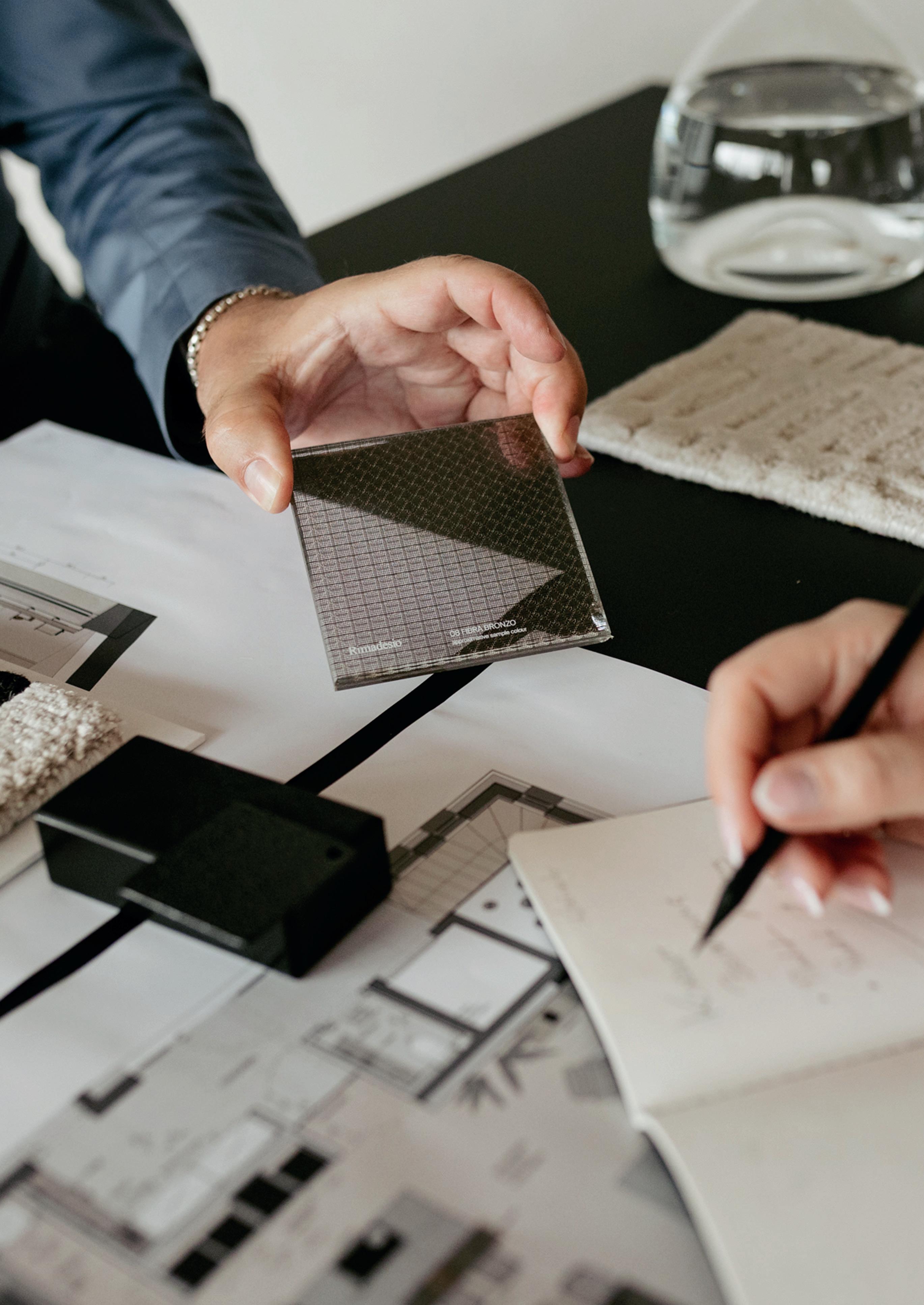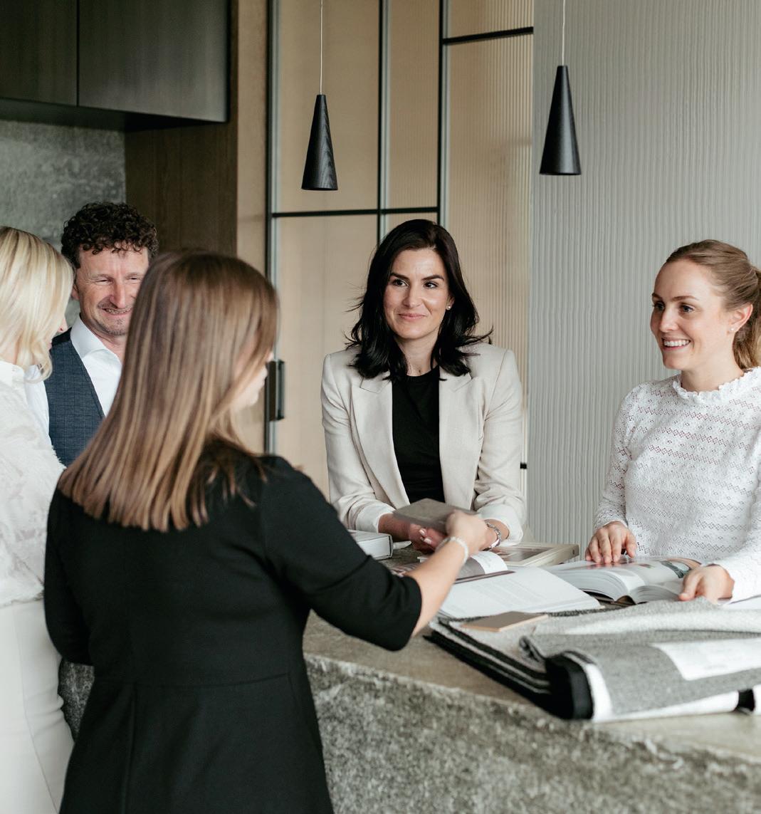 Jedes Projekt beginnt mit Zuhören. Aus ersten Gesprächen entsteht ein gemeinsamer Weg fürs Kreativdesign, der in der Planungs- und Konzeptphase Gestalt annimmt. 2D- und 3DVisualisierungen machen Ideen sichtbar und dazu passende Material-, Farb- und Stoffmuster lassen die spätere Atmosphäre bereits spürbar werden. So entstehen Sicherheit und Vorfreude zugleich – und am Ende ein Raum, der gemeinsam gedacht, präzise geplant und stimmig umgesetzt wurde.