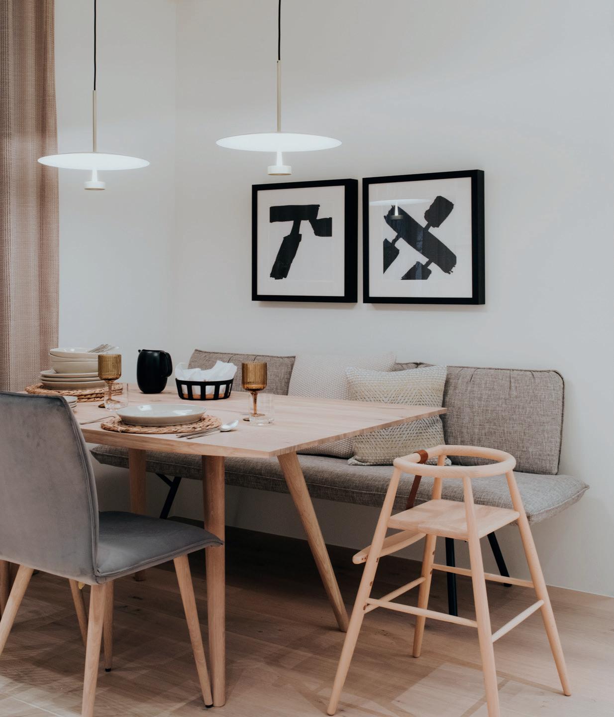 Jeder unserer 70 Mitarbeiter hat bei Aufschnaiter seinen festen Platz. Wer weiter weg wohnt, findet nicht nur im House of Interior sein zweites Zuhause, sondern auch im A-Home. Unser Mitarbeiterhaus trägt denselben Geist wie all unsere Projekte –durchdacht, lichtdurchflutet und mit feinem Sinn für Gestaltung. Mehrere Wohneinheiten zeigen nicht nur ästhetische wie funktionale Raumlösungen, sondern auch, dass Wohlfühlen keine Frage von Größe ist.