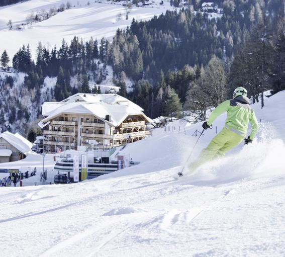 … v rodinné atmosféře. V zimě se od hotelu dostanete po upravené lyžařské trase ke stanici lanovky Hauser Kaibling, která je nástupním místem do lyžařské houpačky čtyř hor. Zpět dojedete na lyžích až do vzdálenosti 100 metrů od hotelu.