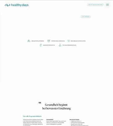 Die neue Informationsplattform – healthy days – ist die Reise zur eigenen Gesundheit. Sie verbindet das Beste aus den beiden Welten URLAUB und GESUNDHEIT und schafft Tage, die einem gut tun. Tage mit Substanz und gesunder Wirkung. Erholsame Momente für sich selbst, nachhaltige Gesundheit und Lebensqualität.