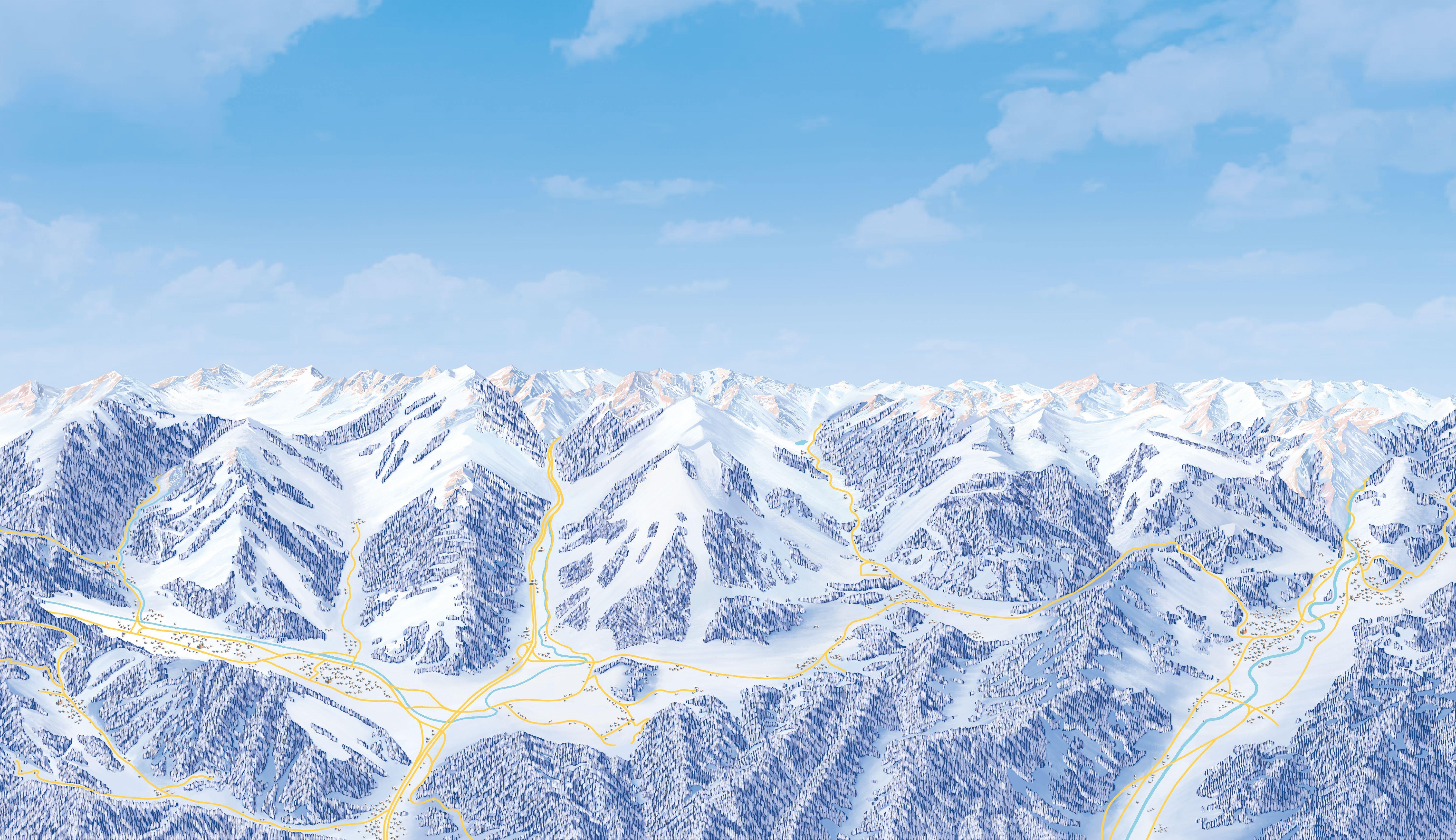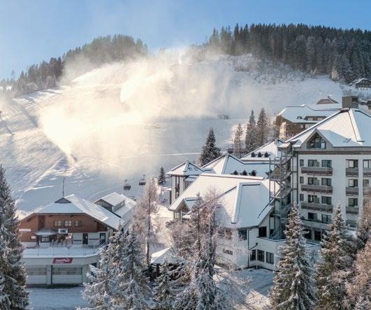 1. 117 m n. m., ski-in ski-out, 123 km sjezdovek, tři vlastní lyžařské chaty