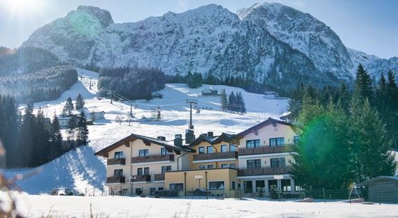 … v rodinné atmosféře. V zimě se od hotelu dostanete po upravené lyžařské trase ke stanici lanovky Hauser Kaibling, která je nástupním místem do lyžařské houpačky čtyř hor. Zpět dojedete na lyžích až do vzdálenosti 100 metrů od hotelu.