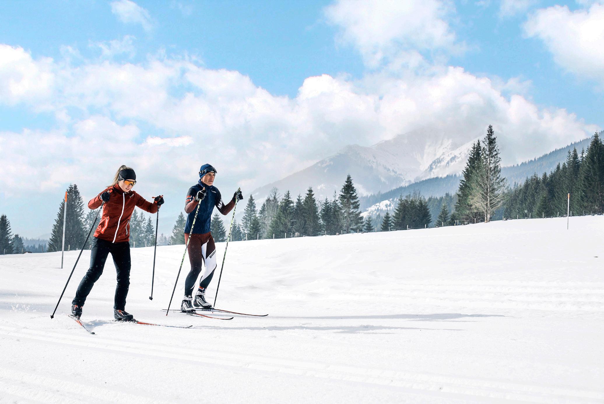 Langlaufbegeisterte genießen das großzügige Loipen-Angebot in der herrlichen Winterlandschaft, wie zum Beispiel die zahlreichen Höhenloipen oder die beschneite und auch an zwei Tagen abends beleuchtete Weirerteich-Loipe.