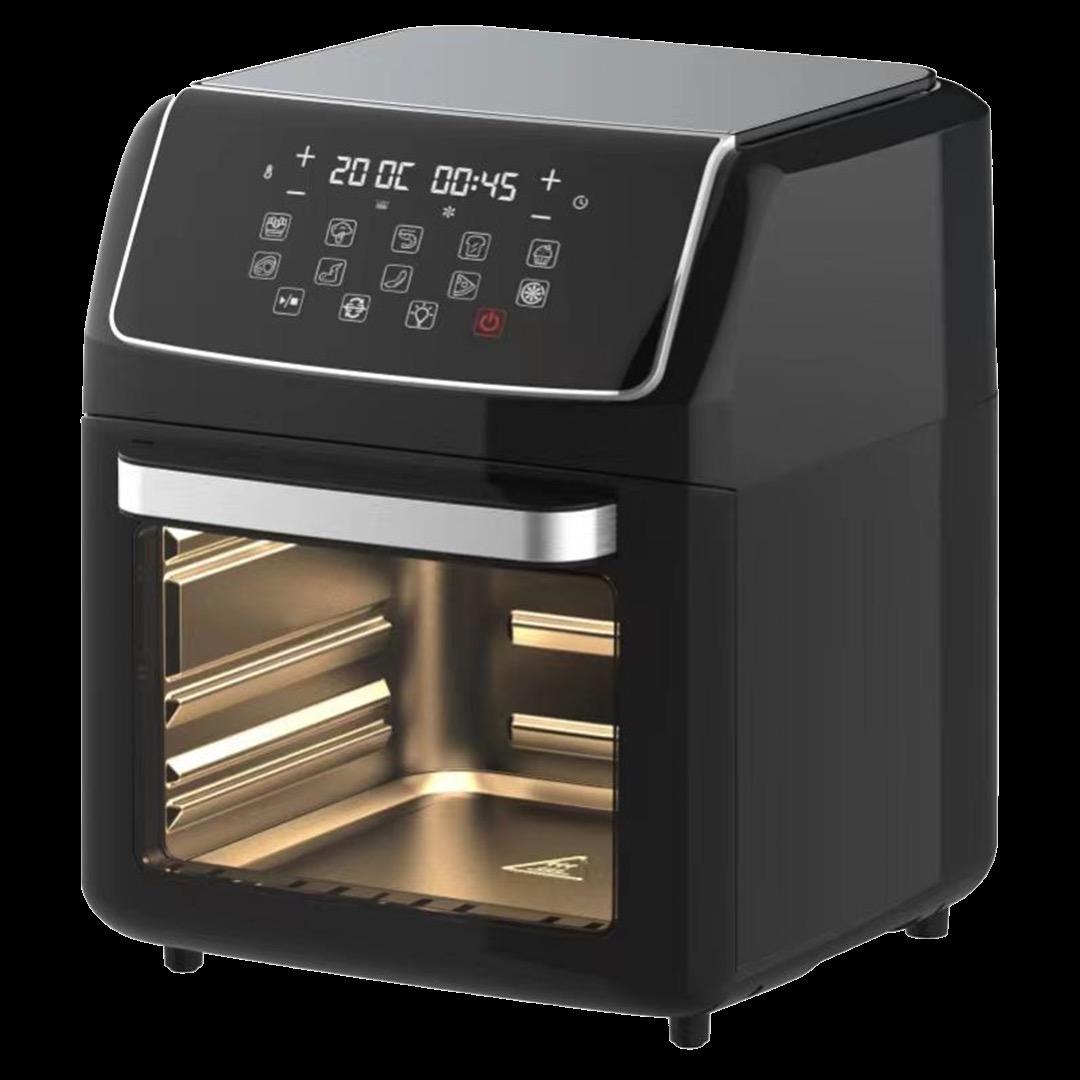O forno elétrico Air Fryer Oven se destaca por seu design contemporâneo, harmonizando os tons preto e prata para criar uma estética sofisticada e funcional. Sua operação silenciosa proporciona uma experiência tranquila e sem interrupções, garantindo que você possa desfrutar de suas refeições sem distrações.