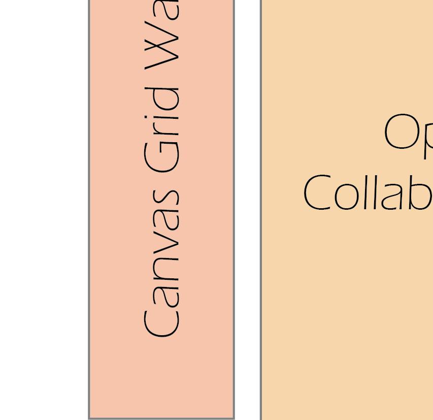 On the second level, those who wish to participate in this experience with the opportunity to take their work with them can do so one the canvas grid wall. Medium and large canvases are available to purchase and pop on and off of the grid sysytem. The same art supplies available on the first level are also available on the second level along with extra canvases.