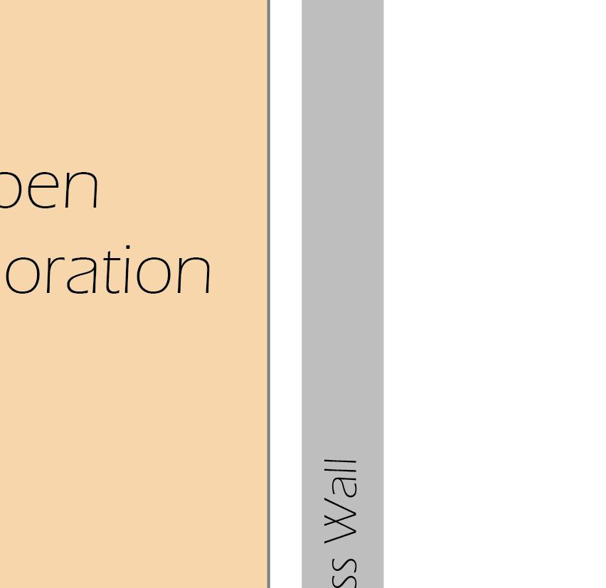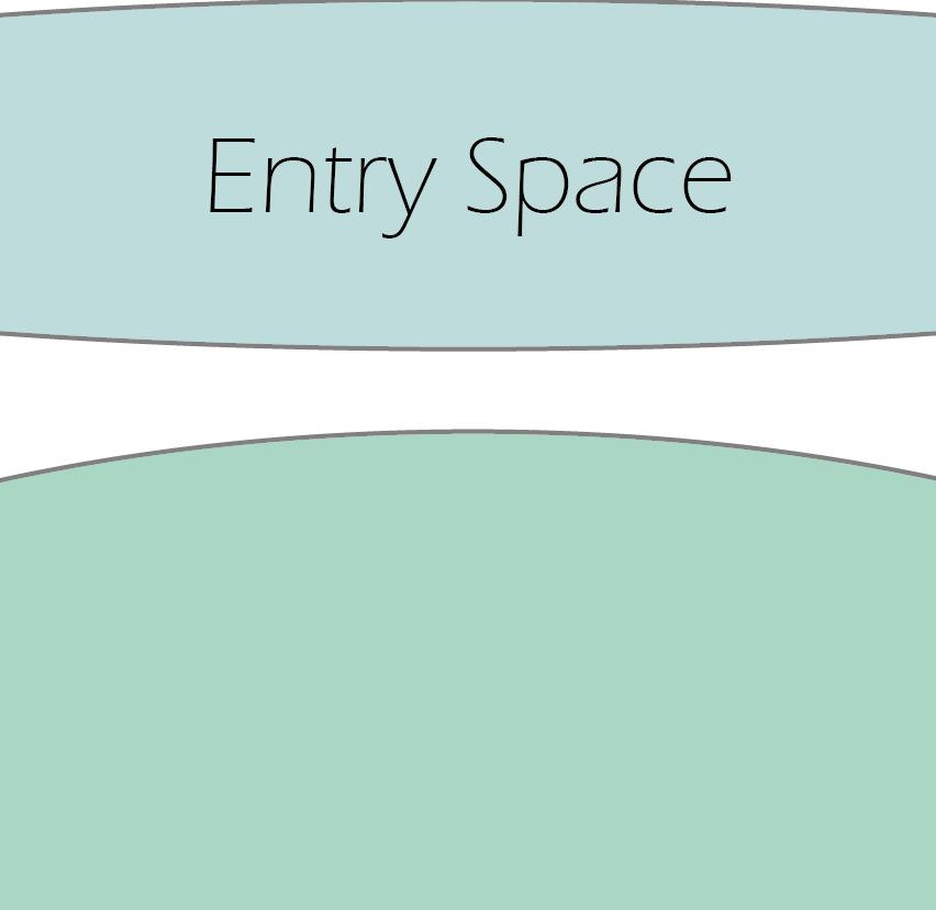 The existing event space will be allowed to keep its existing purpose, the inserted building will be elevated with access on either side to reach the exhibition level. Once at the top, guests will enter a reception area where they can rent supplies needed for the participatory art exhibition. Before entering the exhibition space, guests will notice a timeline that displays the rise and fall of the church as a pillar of the community. To the right of the exhibition there is an open gathering space, followed by a retail kiosk selling pieces of art and prints from local artists, and restrooms tucked into the corner.
