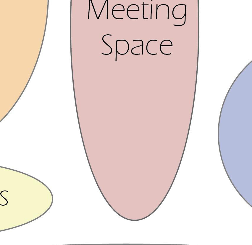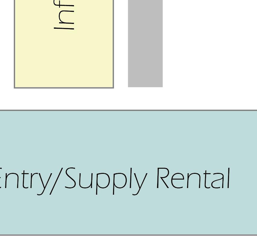 As the concept developed, an atrium feature was incorporated to allow the still-accessible venue below to receive some natural light from above. Adding this feature resulted in a spatial constraint which lead to the addition of a second floor. The canvas grid wall and gathering spaces were bothe moved to the second floor as well as one restroom and the addition of a secondary desk for the rental or purchase of supplies.