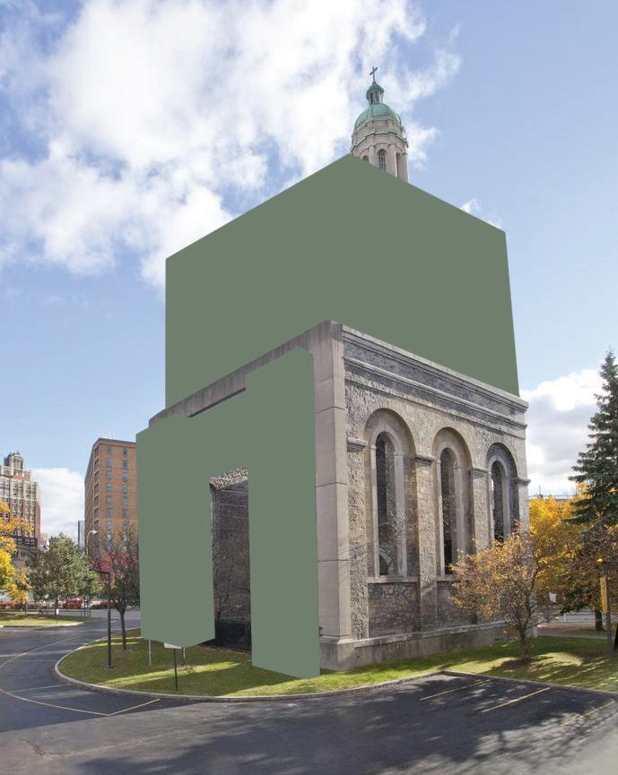 St. Joseph’s was originally a catholic church founded by German immigrants in Rochester, New York. For 128 years, the church was a pillar of the community often referred to as an “oasis of grace” amidst the hustle and bustle of the city. Unfortunately, a fire destroyed the majority of the church, which was a devestating loss for the community. After being recognized as a landmark, the remains of the chirch could not be demolished any further. Eventually, the remains of the church would be home to a garden park and often utilized as a wedding venue. While this may appear to have solved a the issue of repurposing the landmark, St. Joseph’s Park is a littered upon space which appears to be closed much of the time, not a space for community to gather as the church was. The goal of this project is to reimagine a new oasis for the community to come together, and elevate St. Joseph’s to it’s former standing as a pillar of the community.
