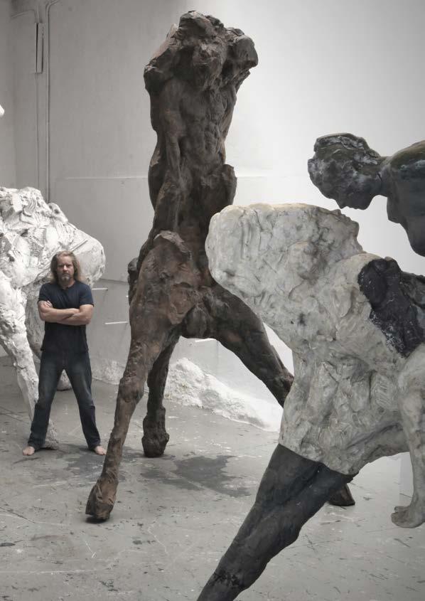 Dylan Lewis is a South African artist who has emerged as one of the foremost figures in contemporary figurative sculpture. Lewis’s work features in private collections throughout the UK, Continental Europe, the United States and Australia, and he is one of only a handful of living artists to have had solo auctions of his sculpture with Christie’s in London. Lewis’s primary inspiration is wilderness. At one level his bronze sculptures celebrate the power and movement of Africa’s life forms; at another the textures he creates speak of the continent’s primeval, rugged landscapes and their ancient rhythms. He works intensively from life, filling books with sketches, notes and drawings. By referring to these in the solitude of his studio, he is able to reproduce the subject’s physical form while exploring their more abstract, deeper meaning. Dylan was born in 1964 and raised in an artistic family in South Africa. His father was an accomplished sculptor, his mother and his grandmother were painters, and his two great-grandfathers were an architect and cabinet-maker, respectively. Lewis initially followed in the family tradition, beginning his career as a painter (studying under Ryno Swart), but later turned to sculpture. Widely recognised as one of the world’s foremost sculptors of the animal form, he initially focused on the big cats. In recent years, he has used the human figure to explore our relationship with our inner wilderness.