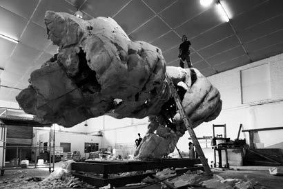 Inspired, Dylan made sketches of the sculpture and visited the cave in which it was found, near the Swabian Alb in southern Germany. While reflecting on the 40,000-year span since the figure was carved, he felt acutely aware that this sculpture held meaning for both his own life, as well as the trajectory of humankind. Consequently, Dylan produced his sculpture in homage to the Löwenmensch. Similar to its Palaeolithic predecessor, the innermost figure has a human body with a cave lion head. Above it, a human figure wearing a lion skull mask merges into a final figure that is entirely unadorned human.
