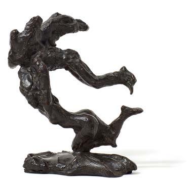 Dylan Lewis’s Shamanic figures mark the point where the artist moved beyond animal forms to explore metaphor and emotion through the human figure. Formally, the works encompass isolated naked male and female figures, often with their faces hidden behind animal skulls. Some of these figures incorporate hybrid human/animal traits in the form of horns, wings, and talons, which have strong mythic and archetypal connotations.