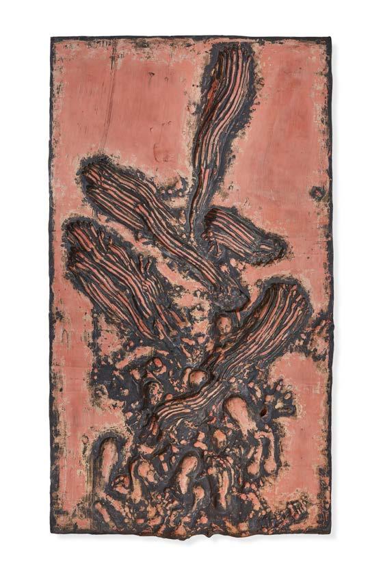 With the Spoor series, Dylan Lewis hones in on the textural quality of his sculptures while eschewing their figurative components. The result is a series of wall-mounted relief works that leap between the realms of painting, sculpture, and printmaking. Dylan’s other works involve careful navigation between several steps before completion. The Spoor works allow for immediate, intuitive interaction with the clay panels. Bypassing intentionality, the Spoor works are a vessel for raw, unfiltered emotion and a testament to corporeal experience.