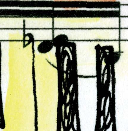 Instantánea que atesora el proceso creativo del artista de la plástica Nelson Villalobos (Cien fuegos, 1956), quien realizó una serie de obras bajo el nombre de Mi Aldea, para ilustrar el presente número de El Sin copado Habanero, inspiradas en el CD homónimo del compositor Ernesto Oliva (Guantánamo, 1988), quien creó la obra titulada Guan tabanera, que publi camos en la sección «Pentagramas del Pasado».