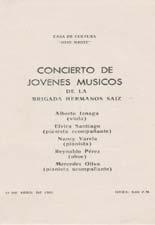 6Dedicatoria realizada por Juan Piñera a Elvira Santiago, en el programa de mano del concierto. Fondo personal de Elvira Santiago.