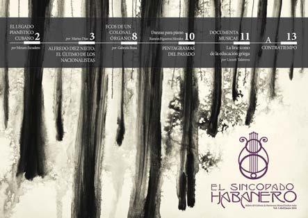 En portada, Alba (canción matinal), del artista visual Aleph Rondón (La Habana, 1989), correspondiente a la serie Ascendencia errante, inspirada en la trova cubana. Tanto en esta pieza como en Planto (canto fúnebre) —portada de la sección «Pentagramas del Pasado»—, de la misma serie, el autor recurre a la técnica de tinta y acrílico sobre cartulina.