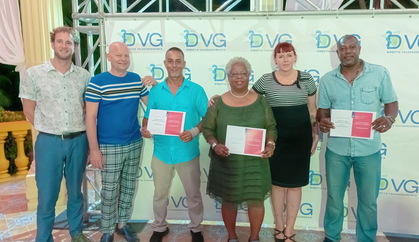 Minister Oduber ta yama danki na e team di DVG y tambe na e team di Hulanda sr. Thijs Veenstra, sra. Tanja Hartog y henter e Cluster Milieu & Hygiëne. Un pabien na tur cu a ricibi nan certificado, nos fronteranan ta bay ta den bon man.
