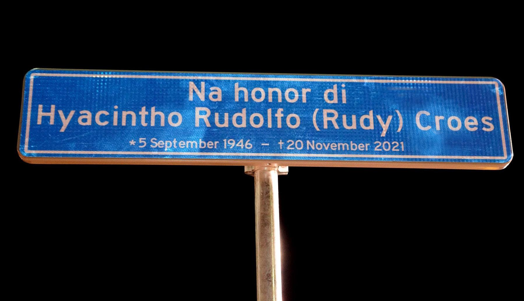 Diabierna 08 di november a tuma luga e ceremonia unda a desvela e borchi di e caya na honor di Hyacintho Rudolfo (Rudy) Croes. E caya ta cuminsa na rotonde di Plaza Status Aparte te na rotonde di ex-Drive inn. Prome Minister Evelyn Wever-Croes tawata presente pa e ocasion importante aki hunto cu coleganan minister y varios parlamentario y colega di Partido MEP. Rudy Croes a nace 5 di september 1946 y a fayece na edad di 75 aña dia 20 di november 2021. Den su carera politicio Rudy a sirbi pais Aruba como Parlamentario y Minister.