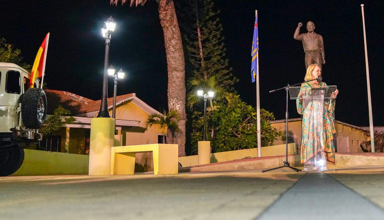 “Esaki ta djis un parti chikito di e biografia di Rudy. Awe ta asina leu cu Gobierno ta dedica e caya aki na Rudy Croes. Tawata un anochi agradabel unda su yiunan, rumannan, famianan y coleganan di Partido Movimiento Electoral di Pueblo a reuni pa e momento memorabel y a recorda logronan grandi di Rudy. Santa Cruz y Aruba ta dedica e caya aki na e gran persona Rudy Croes. Danki Rudy, pa tur loke bo a haci pa nos dushi isla Aruba”, Prome Minister a expresa.