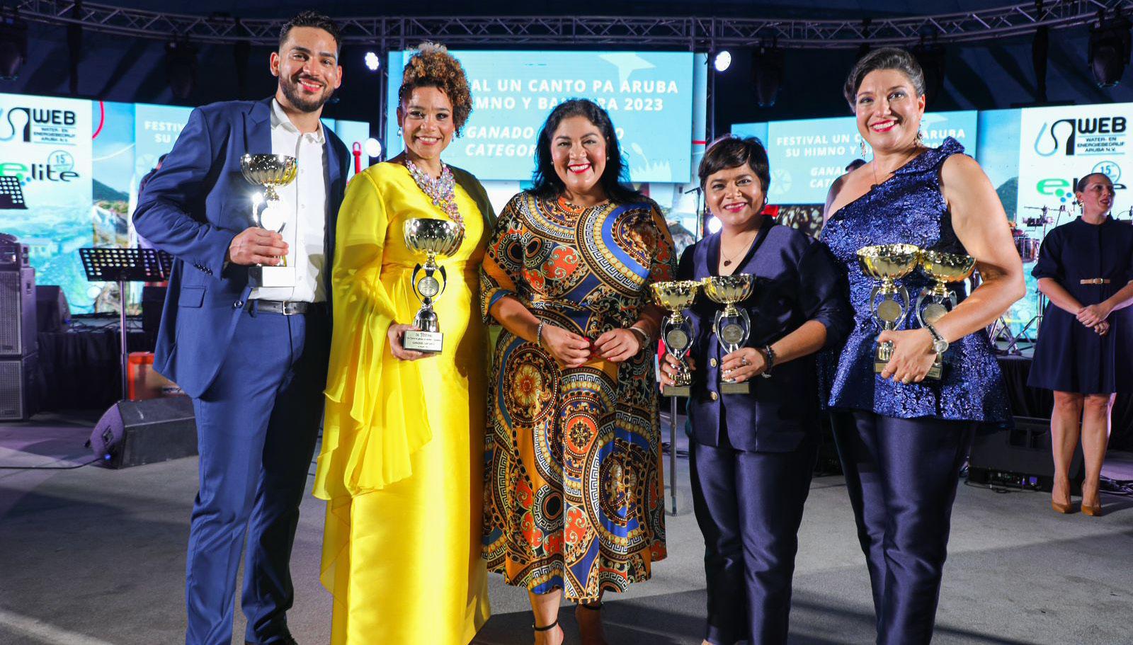 Diadomingo ultimo a tuma luga e festival Un Canto pa Aruba su Himno y Bandera 2023. Un total 22 cantante y un total di 12 agrupacion musical a participa y a haci e festival uno grandioso y exitoso. Aruba a conoce composicionnan nobo dedica na nos Pais Aruba. Minister di Cultura tabata presente pa duna sosten y apoyo na tur participante. Na momento cu e resultado tabata cla, Minister Maduro tabata tin e honor pa por a entrega premio na e ganado maximo.