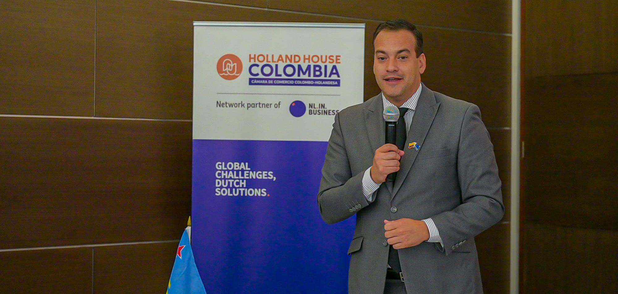 Basa riba e convenio Holland House lo asigna un di nan experto pa duna apoyo na tur comerciante cu kier expande nan actividadnan comercial den e mercado colombiano. E “ArubaOffice” lo sigui - na un manera structura - ofrece e experticio relevante na comerciantenan local pa logra nan meta den e mercado Colombiano.