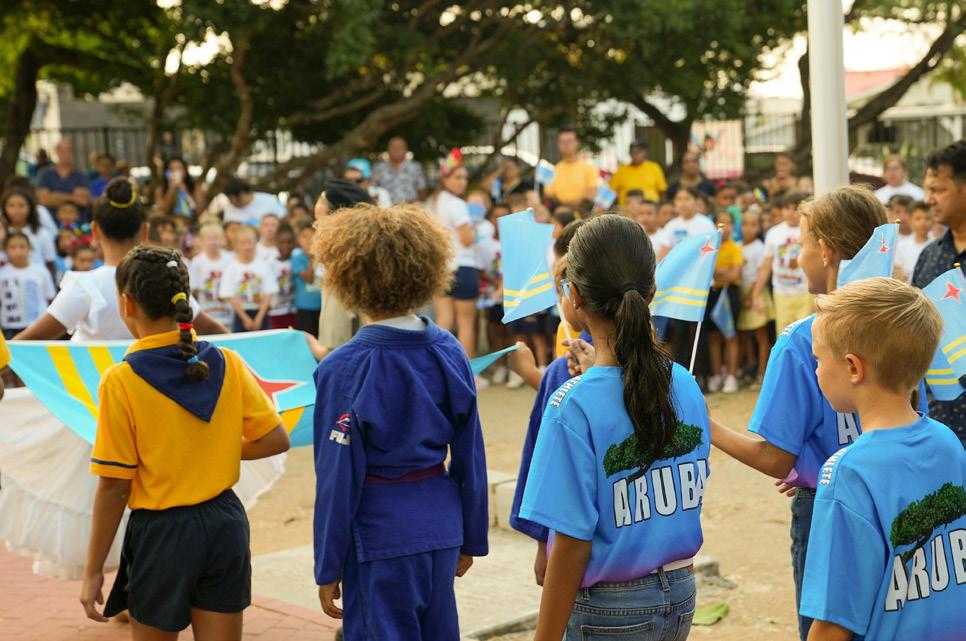 Pa inicia e evento aki, e muchanan a deleita e publico cantando e himno "Aruba Dushi Tera", sigui pa declamacion di un poësia di pais Aruba, mustrando asina e amor y union, creando e sentimento di cu tur cu ta biba riba e baranca aki, ta Arubiano.