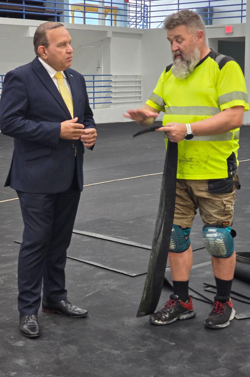Sr. Robert Polewski, kende ta instalado oficial di e compania Herculan a indica cu Herculan ta un compania mundialmente renombra den sport vloer. Ademas, Sr. Polewski tin e experticio y conocemento, ya cu el a instala vloer pa diferente sporthal rond di mundo. Actualmente, e ta na Aruba, unda cu nan ta instalando e vloer ultramoderno di e marca Herculan MF 10 plus 2, cual ta un di e miho materialnan di mundo. “Gabinete Wever – Croes II ta priminiti y nos ta cumpli. Nos ta gradici directiva di ASU, Lotto pa Deporte y Gobierno di Aruba pa haci e proyecto aki posibel pa nos deportistanan. Nos curason ta bati pa deporte. Pabien pa tur deportista,” Minister Endy Croes a finalisa.