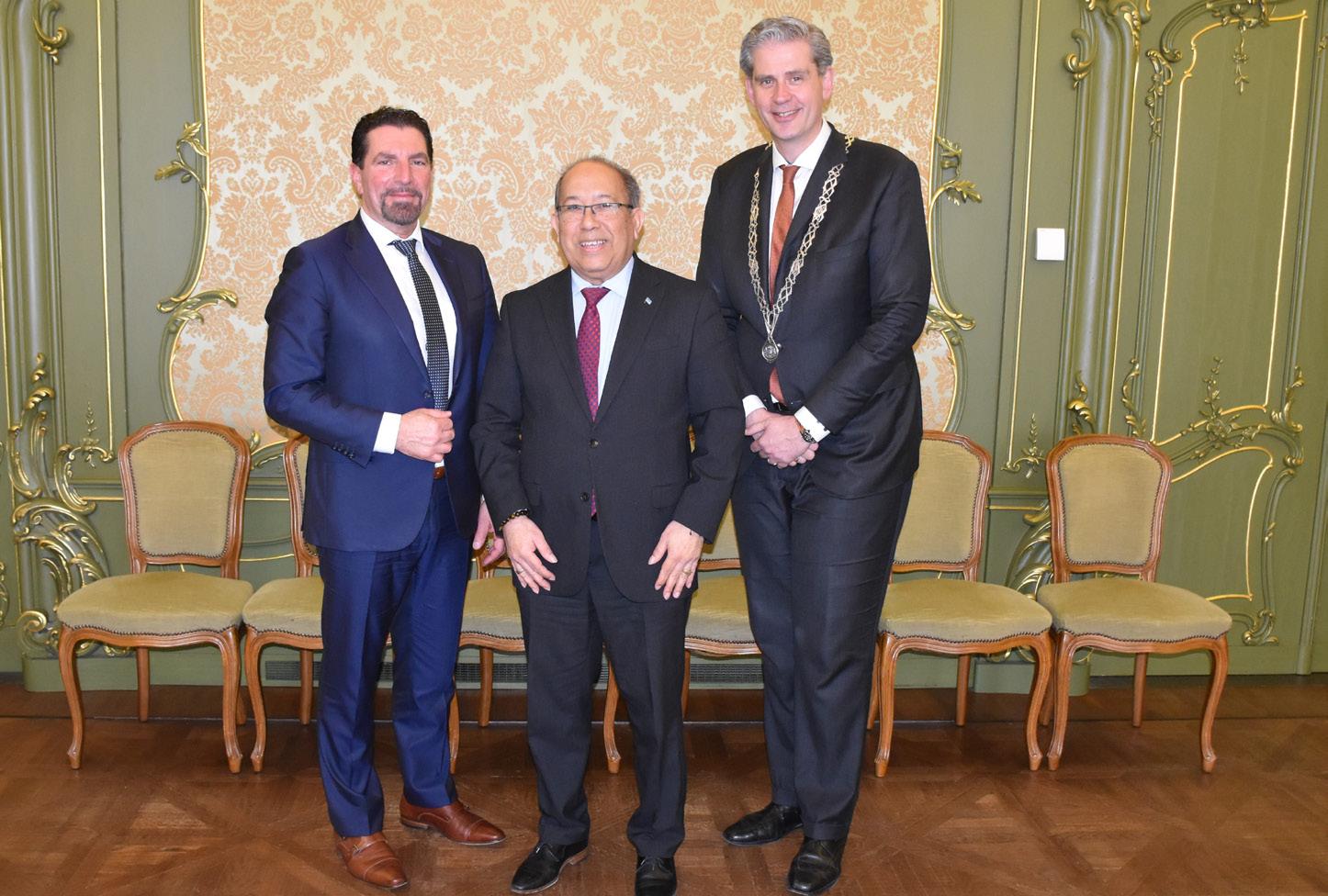 Minister Plenipotenciario mr. Ady Thijsen a haci un bishita na burgemeester di Dordrecht Wouter Kolff. Tambe presente na e bishita aki ta John Dirks, studiementor pa Rotterdam.