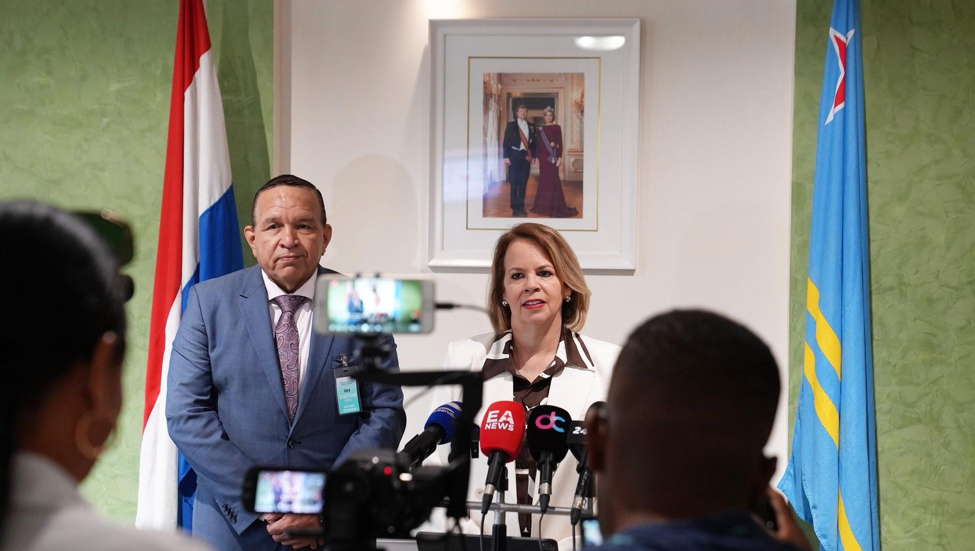 Prome Minister a enfatisa cu e Gobierno di Gabinete WeverCroes, un biaha mas a demostra di ta un Gobierno serio, responsabel y hopi stabiel y capaz pa atende cu tur reto di nos pais. “Mi kier sigura henter comunidad di Aruba cu gobernacion di Aruba ta den bon man. Nos ta bayendo den e direccion cu nos mester bay pa recuperacion di nos pais. Y pa nos sigui supera tur e crisisnan cu nos a bin ta enfrenta ya desde 2017, di cua e pandemia tawata un crisis sumamente grandi. Pero cu e areglo cu a firma cu Hulanda, e miho temponan lo cuminsa y nos lo mira mas e frutanan di recuperacion. E frutanan di e reformanan cu nos ta implementando, y den bon cooperacion den henter Reino, nos lo yega na solucion di tur e retonan cu nos tur ta biba cu ne. Aruba, Corsou y Sint Maarten tin retonan similar. Y nos a demostra awo cu ora cu para hunto, cosnan grandi por wordo logra”, Prome Minister Evelyn Wever-Croes a expresa.