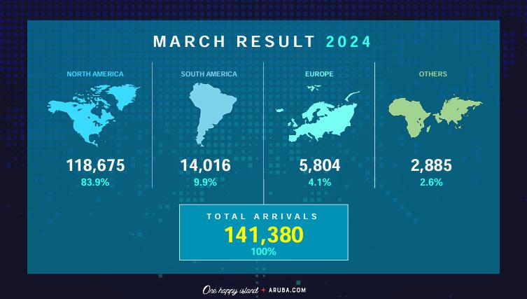 Minister di Turismo y Salud Publico sr. Dangui Oduber ta satisfecho cu luna di maart a sera cu resultadonan positivo. Maart 2024 a ricibi 141,380 bishitante cu a drenta Aruba cu un 25.8% den crecemento compara cu e mesun luna di 2023.