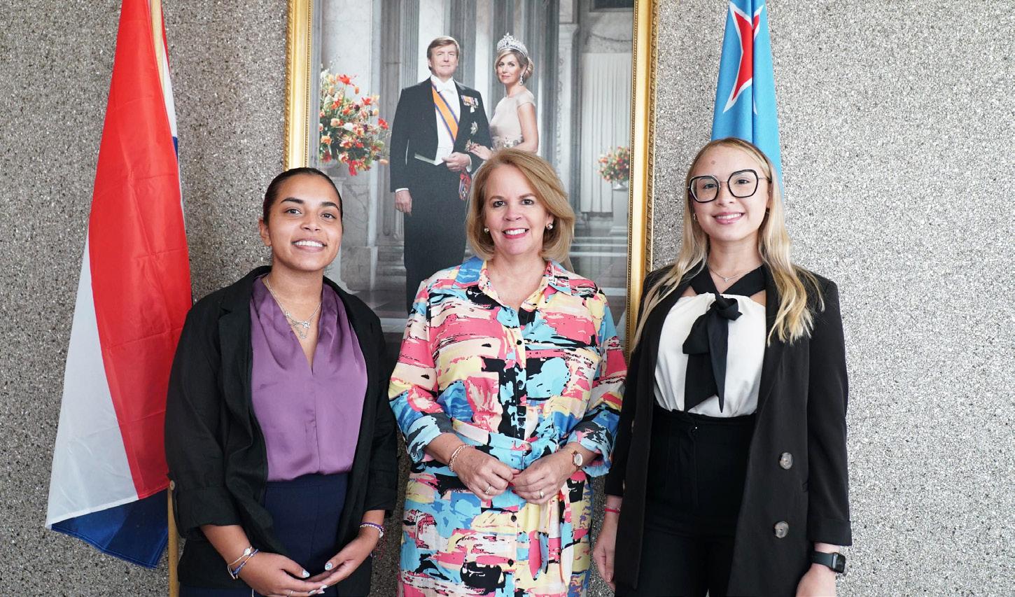 Dialuna merdia, Prome Minsiter Evelyn Wever-Croes a reuni cu dos studiante di Universidad di Aruba, pa asina wordo entrevista, como Prome Minister di pais Aruba den cuadro di un buki cu lo wordo publica riba "Gender and Education".