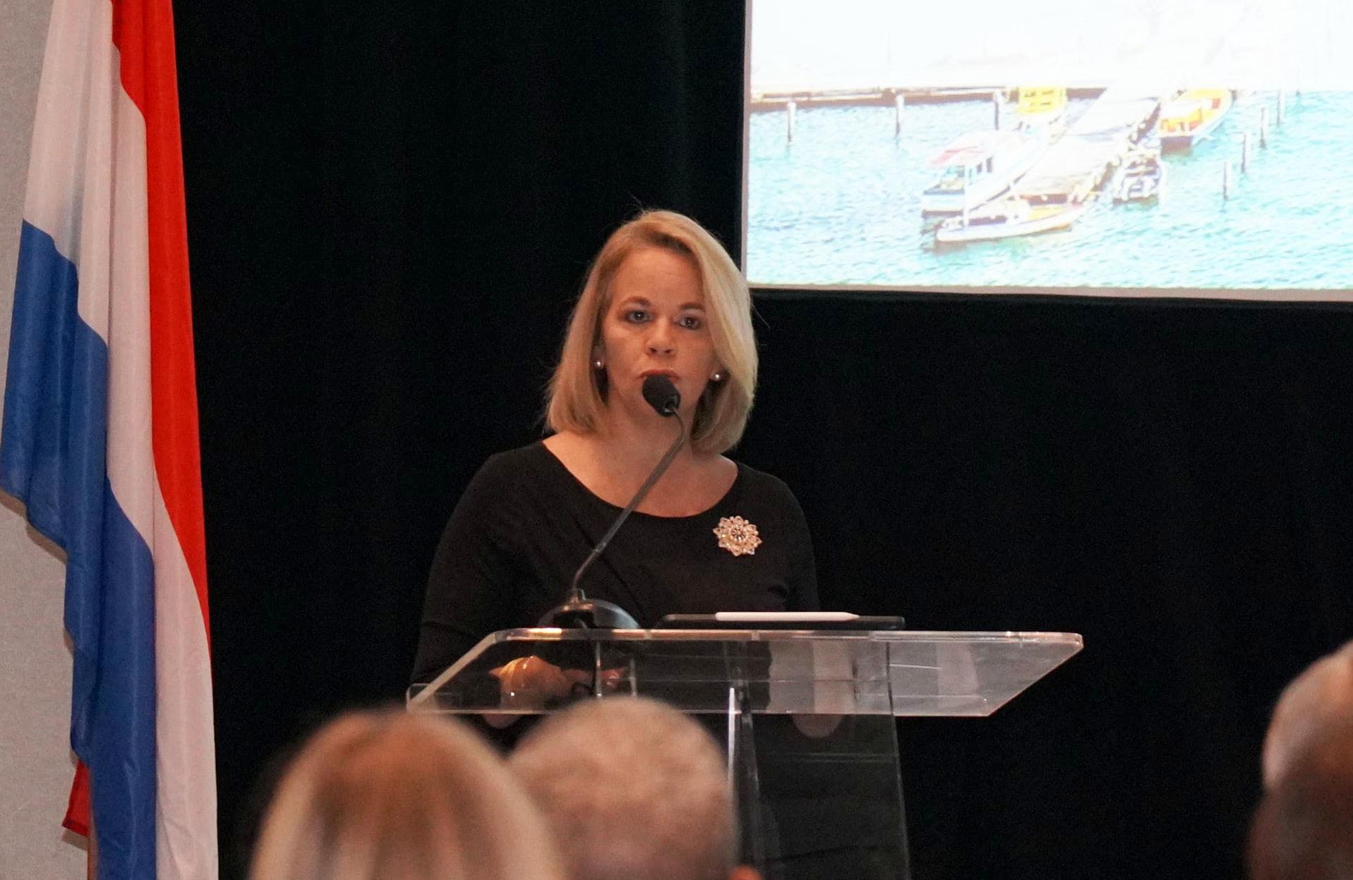 Endy Croes a duna un discurso y a duna un palabra di felicitacion na e 330 profesionalnan cu a completa e cursonan aki cu exito y di forma cu nan por sigui promove Aruba y brinda un miho servicio na e huespednan di Aruba.