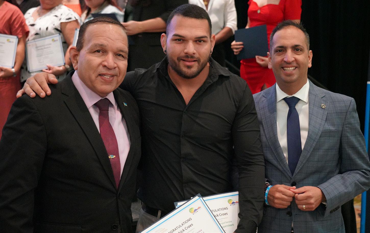 Diaranson mainta, Minister Endy Croes y colega Minister Dangui Oduber tabata presente na e ceremonia unda cu 330 empleado di industria hotelero a participa na e Supercharged Service Training Program 2022 di Aruba Time Share Association (ATSA) y CHTA Education Foundation na e Ballroom di Aruba Marriott Resort & Stellaris Casino.