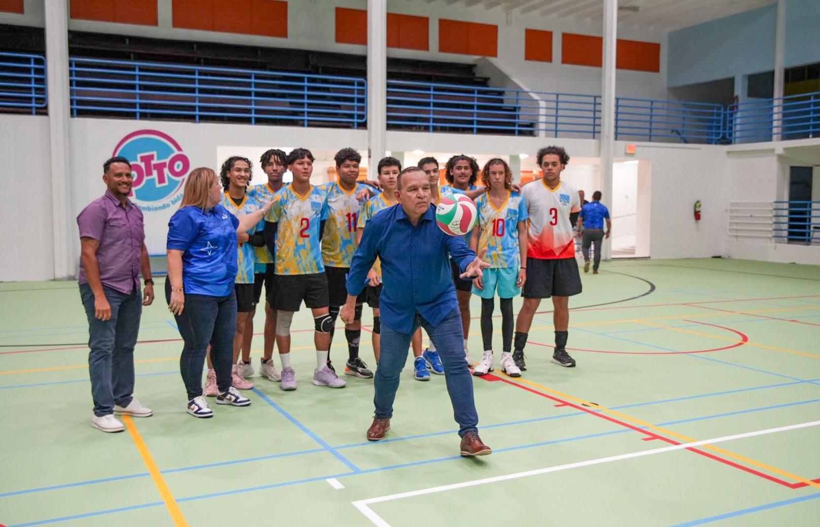 Minister Endy Croes acompaña pa su kerida esposa Sra. Dilailah Croes – Odor a acudi na e ceremonia di apertura. Durante e ceremonia a cende e “signage” nobo y moderno di Centro Deportivo Libertador Betico Croes. Despues Minister Endy Croes y presidente di ASU Sra. Soraida Boekhoudt a corta e sinta pa asina inaugura oficialmente Centro Deportivo Libertador Betico Croes. E mandatario di Deporte y Sra. Boekhoudt a haci e sake di bala den un wega di amistoso entre e seleccionnan di volleyball di Aruba. Fuera di esaki, ASU a reuni cu su miembronan, unda cu a presenta dos (2) proyecto nobo, esta un veld chikito di futbol y un “atletiekbaan”. E miembronan a keda hopi contento cu e noticia aki.