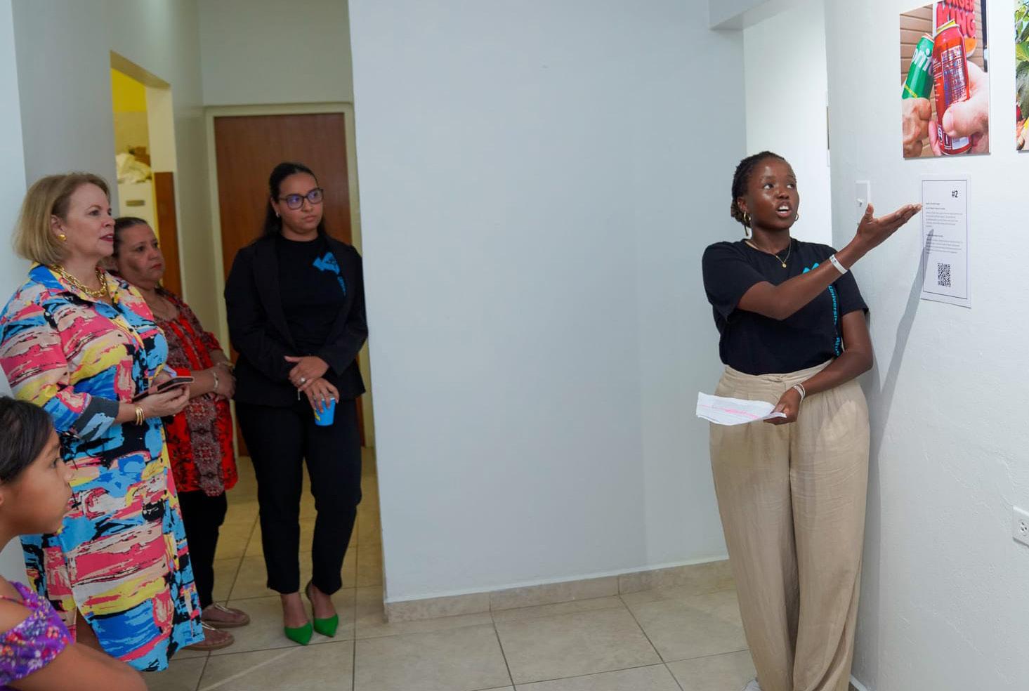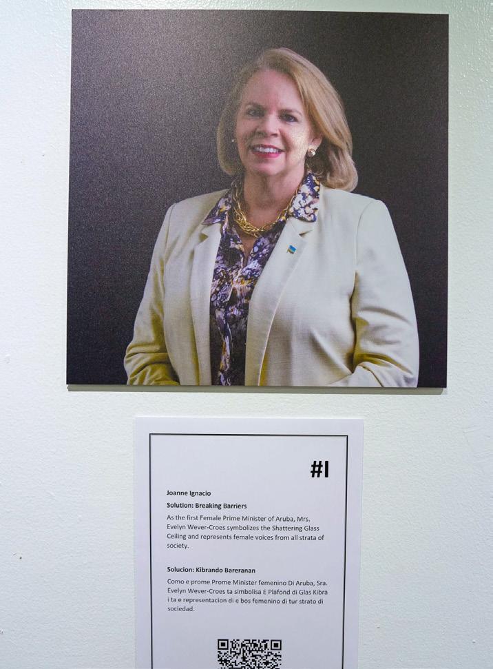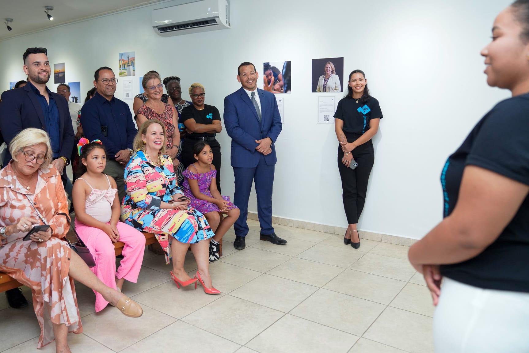 E studiantenan cu a haci e exposicion ta di e facultad di Art & Science di Universidad di Aruba y ta studiando pa bira trahado social. Pa esaki e hobennan a sigui un curso di fotografia y por a mira un resultado hopi profesional. Prome Minister a menciona cu e tema di e exposicion “Problemanan Social y Solucionnan” ta uno hopi interesante ya cu e ta mustra a traves di e arte di un potret e problema, pero tambe e solucion pa esaki, cual ta hala atencion ya cu un problema tur hende por pensa riba dj’e pero e echo cu e studiantenan a busca pa cada problema un solucion y present’e den nan arte, esey ta di admira.